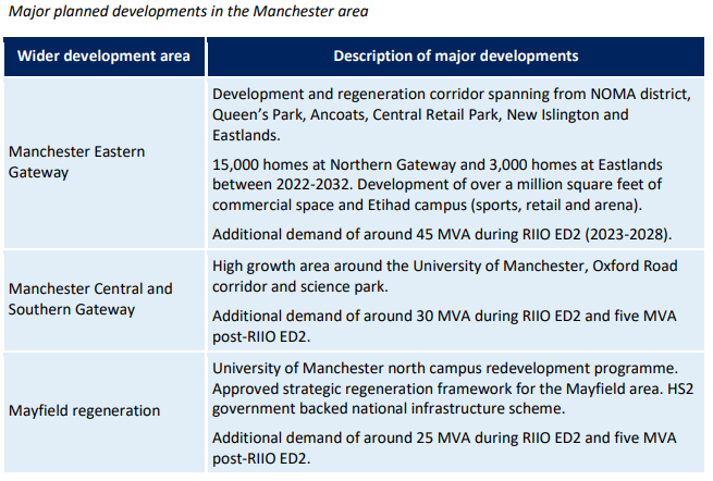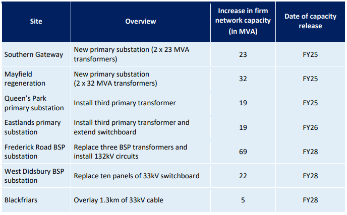 - Two new primary substations in the south of Manchester, i.e. in the Mayfield regeneration area and at the Southern Gateway.