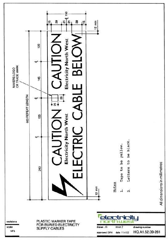 - png ENWL Marker tape specification